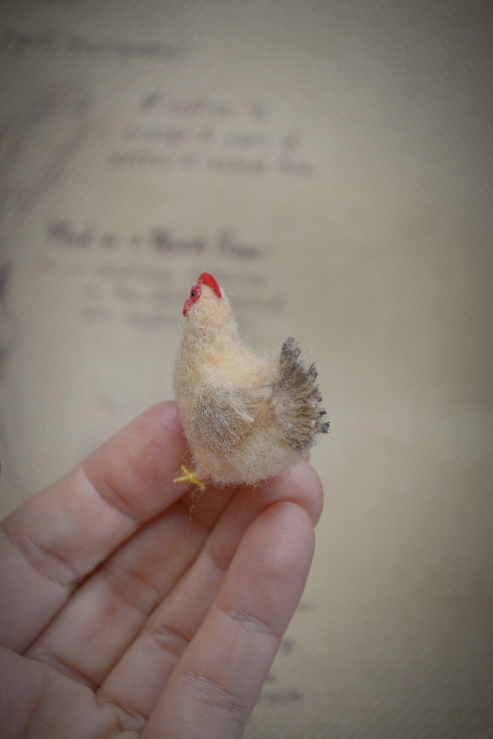 This needle felted white chicken miniature is a charming handmade collectible created from natural wool. Carefully crafted by hand, this tiny chicken captures the rustic charm of a countryside farm animal in soft, detailed form.