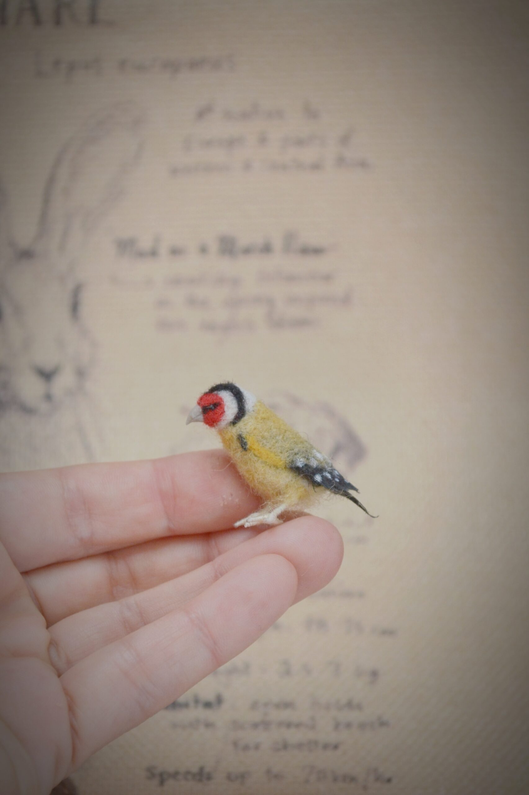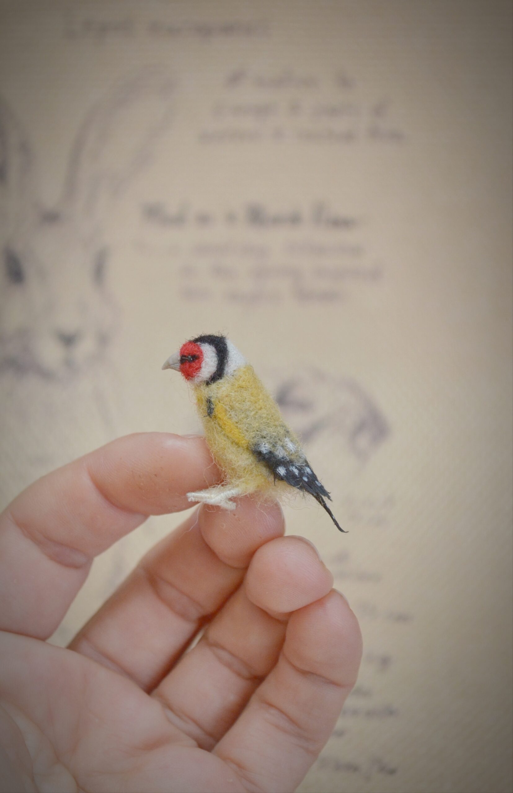 - Handmade needle felted goldfinch miniature