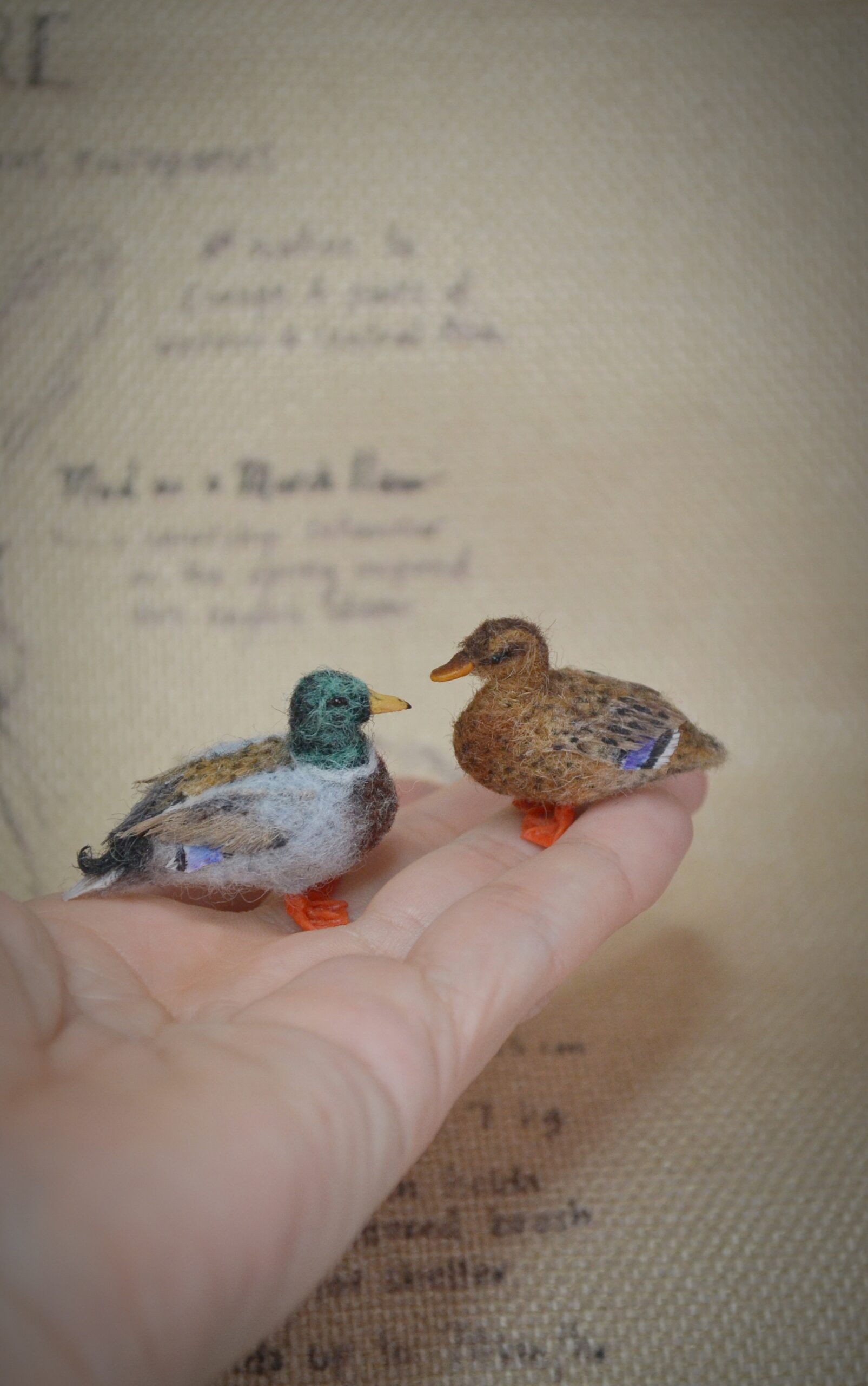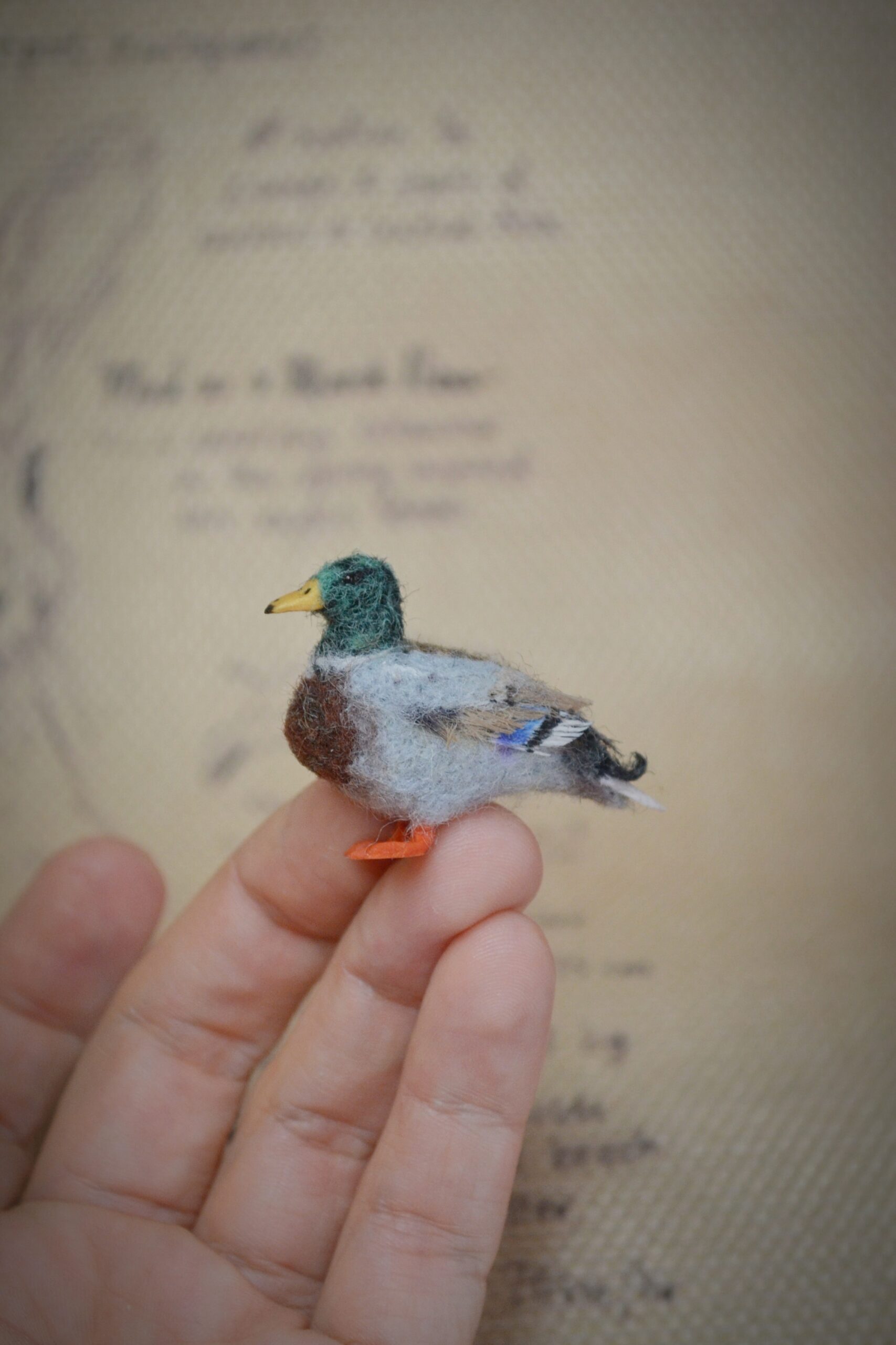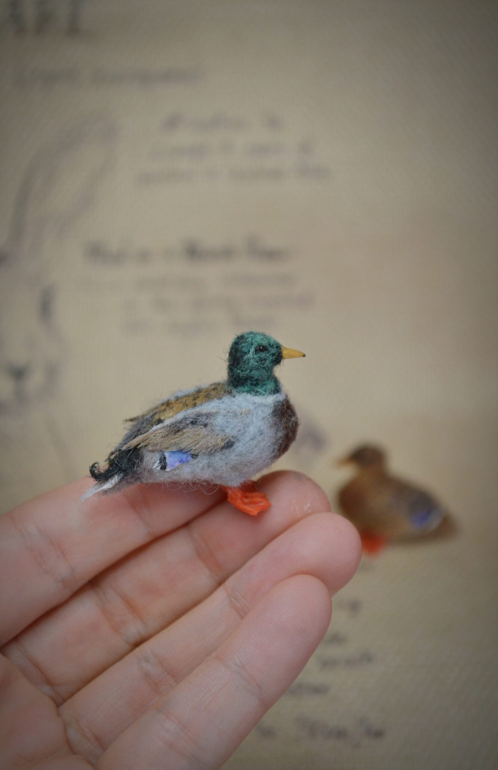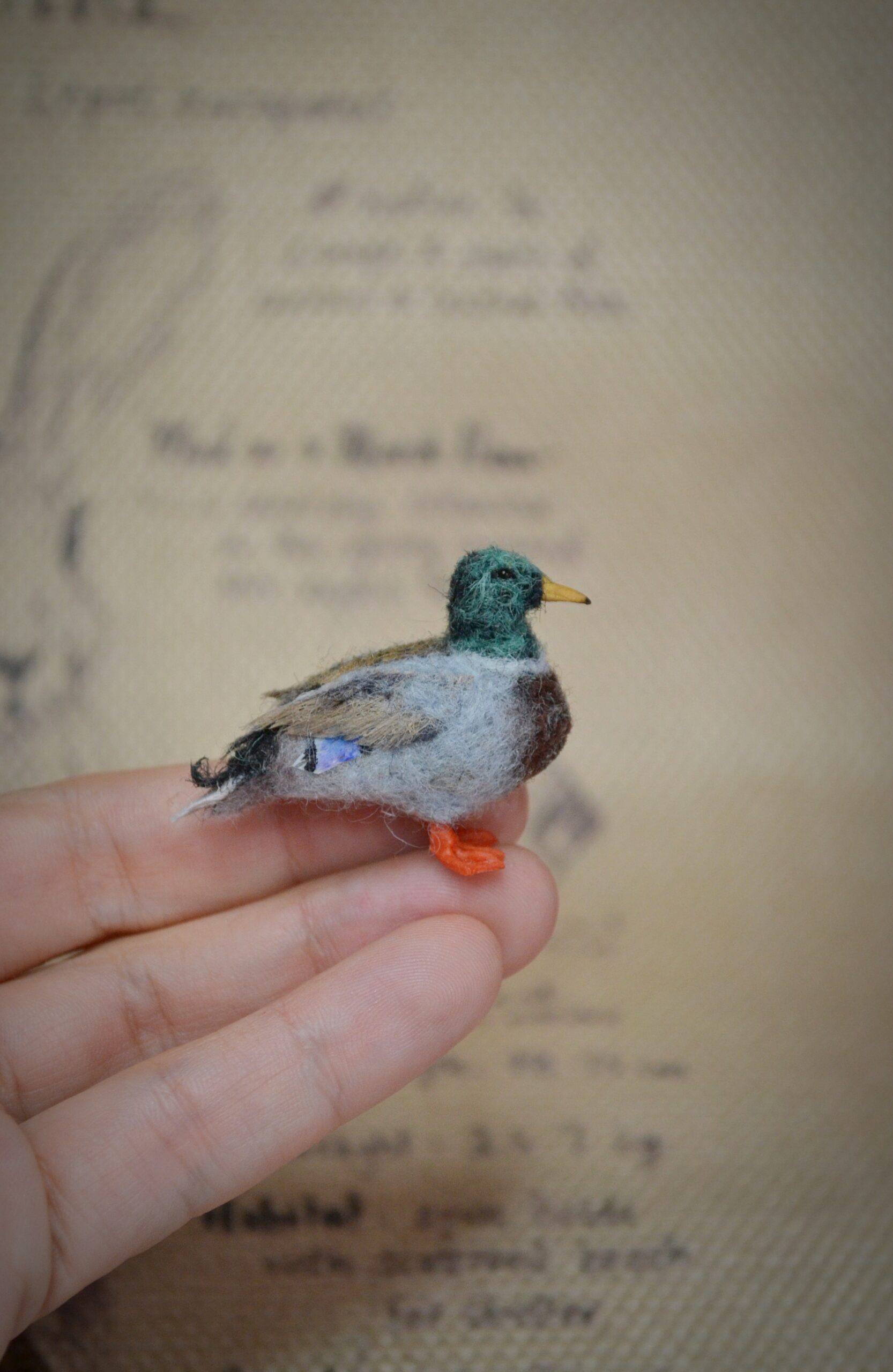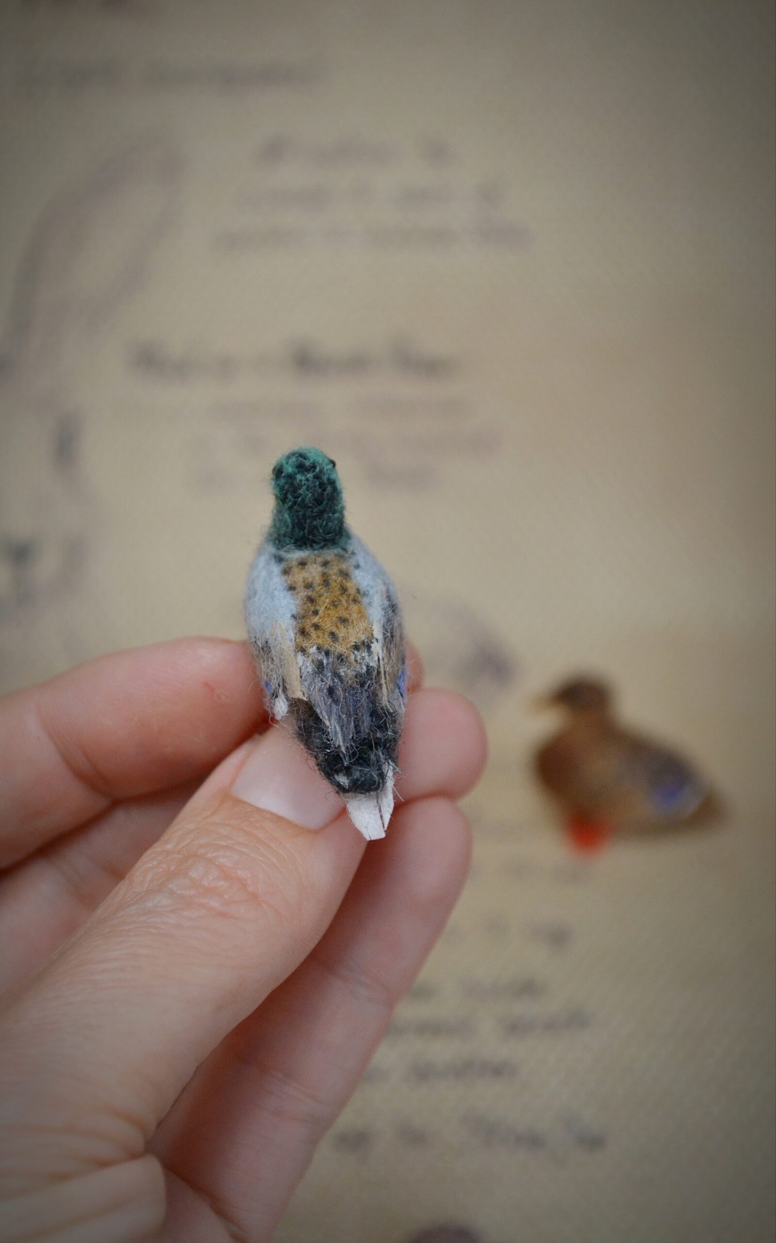 Each felted mallard miniature is individually created using traditional needle-felting techniques, making every wool bird sculpture unique and one of a kind.