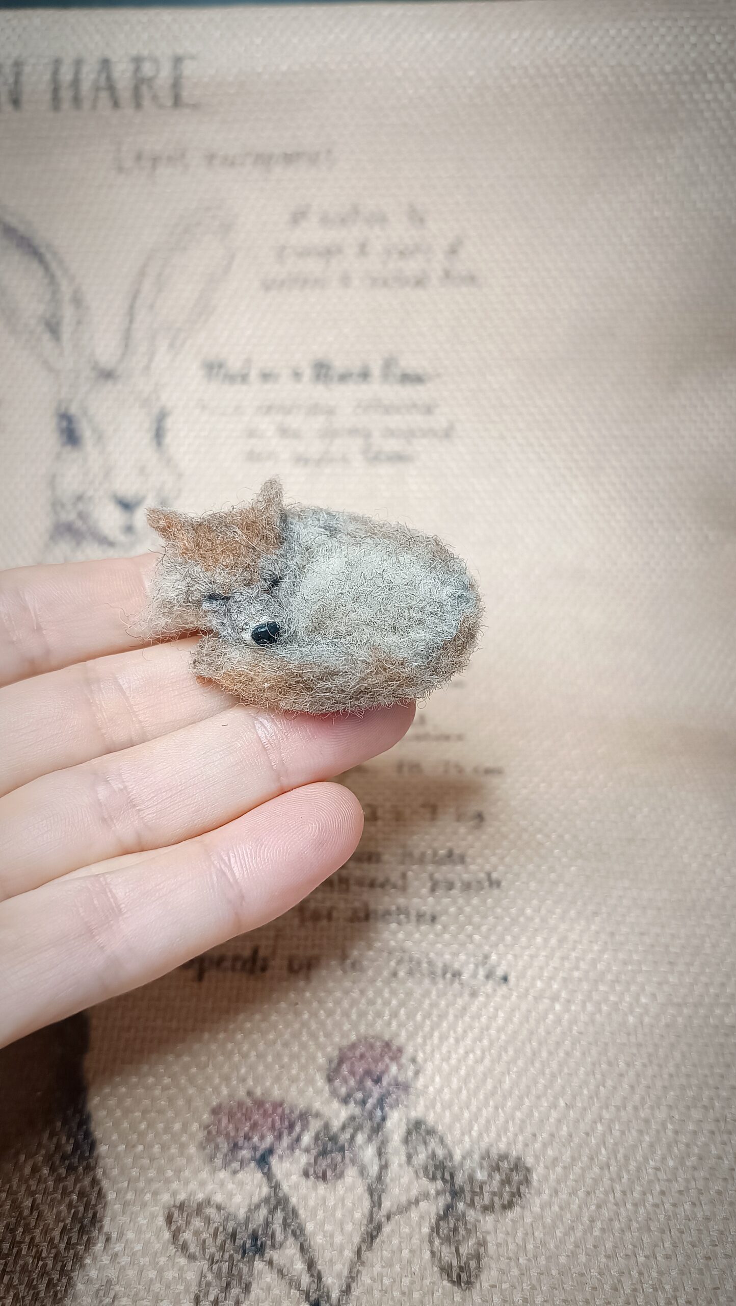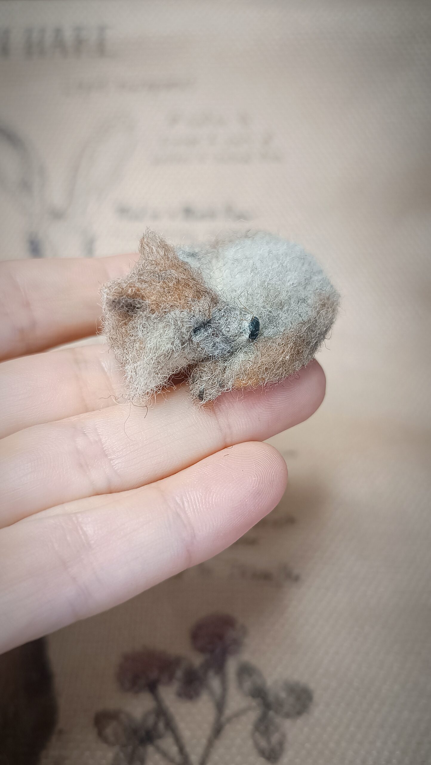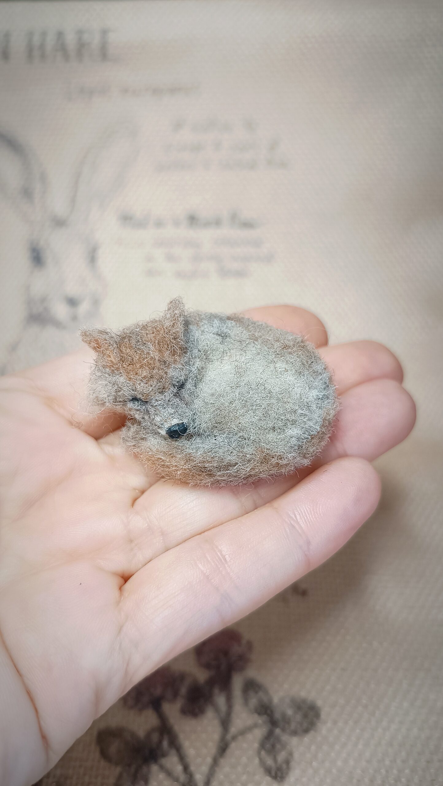 Each figurine is crafted entirely by hand using soft natural wool and the needle felting technique, giving it realistic texture and lifelike detail. The curled body and fluffy fur make this tiny wolf a perfect addition to your woodland animal collection, diorama, or cozy home decor.